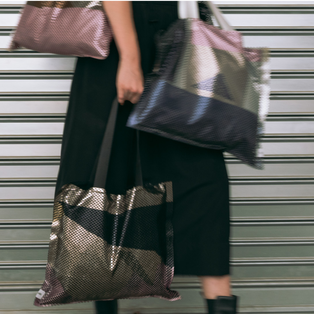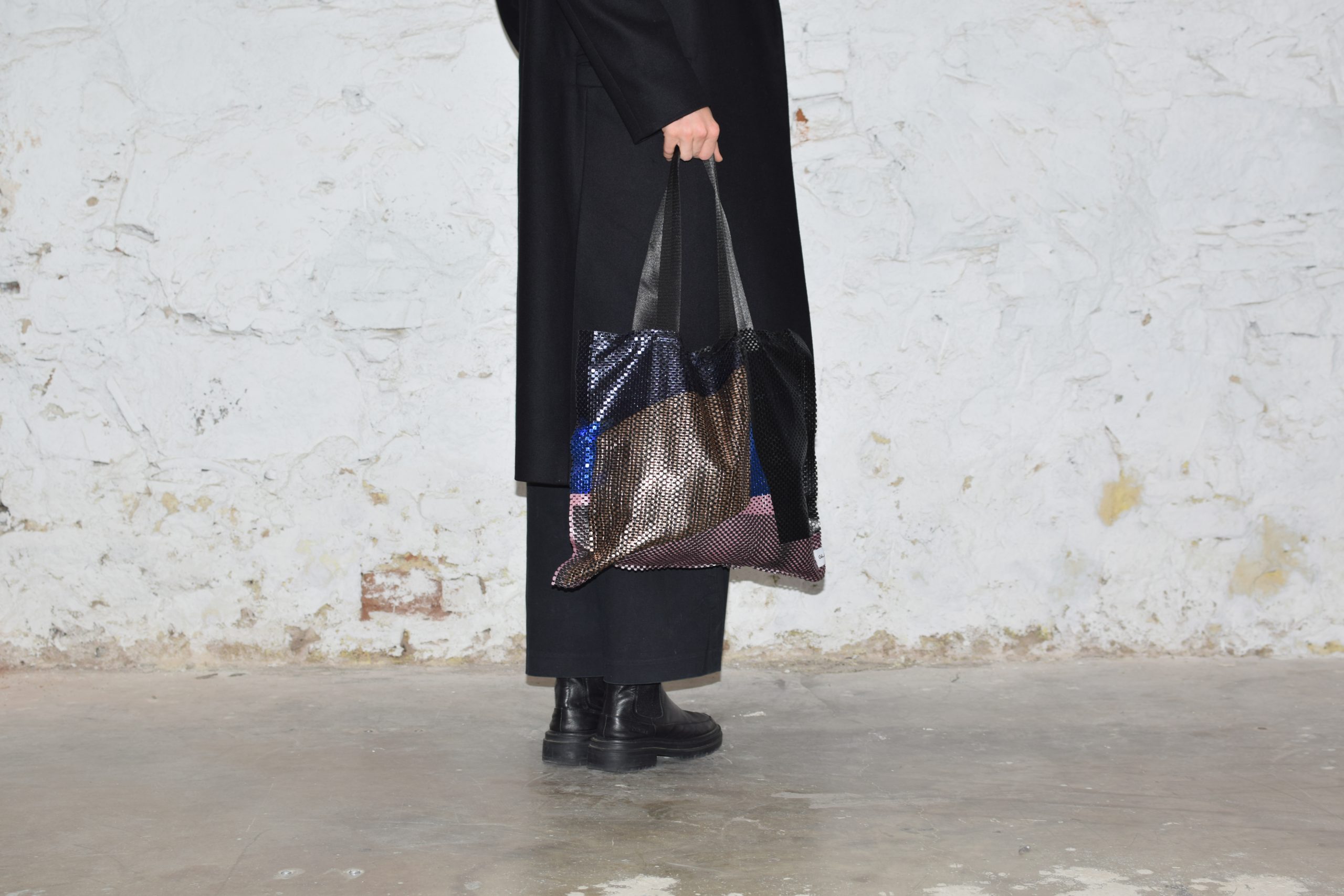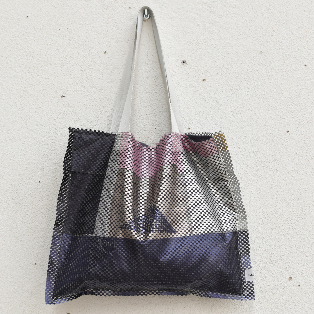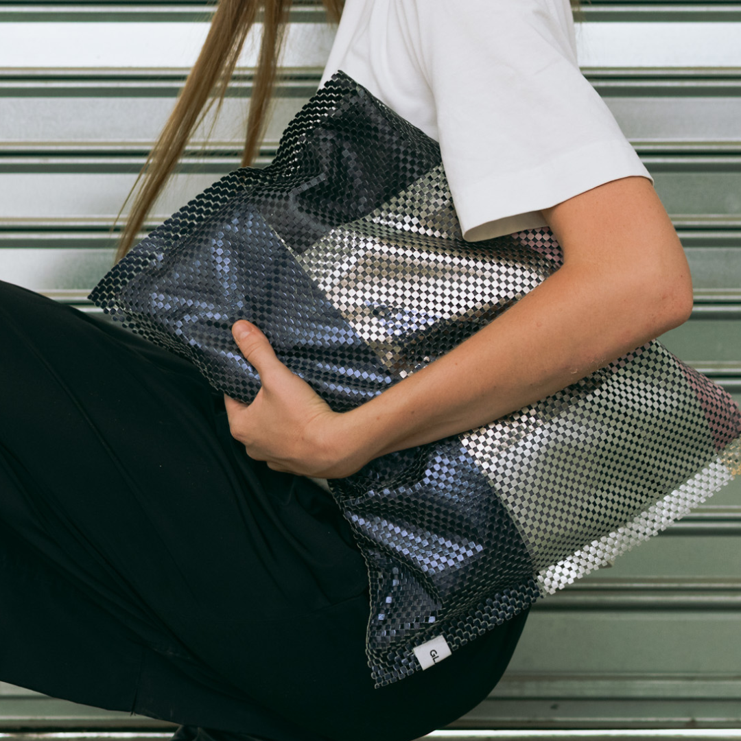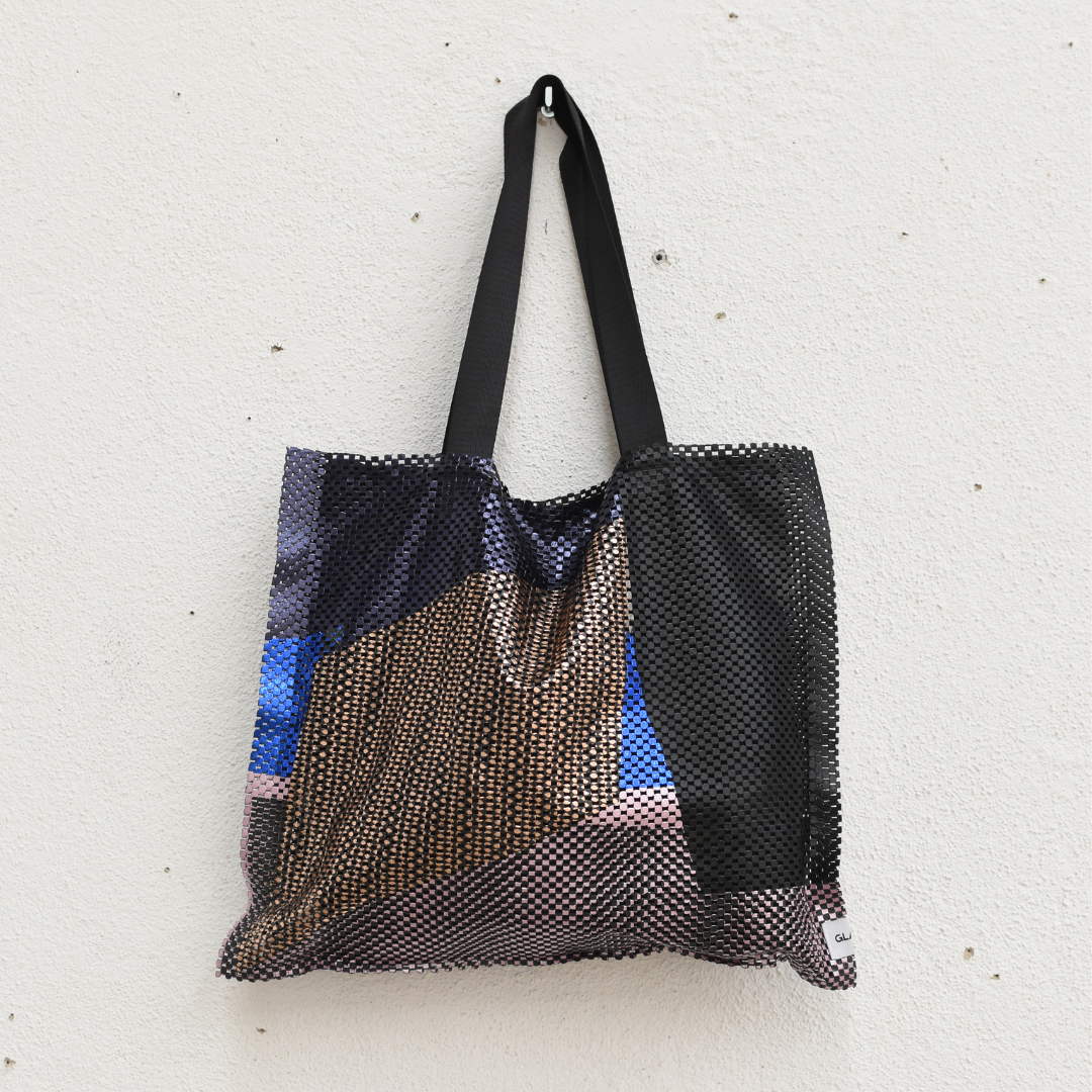 This bag is handcrafted, each one is completely different from the other, and its printing technique makes each print a unique piece in colour and design. Its sturdy handles, metal clasp and shape create a modern and avant-garde composition.